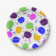 Festa de Biscoito? Macaron Confetti Paper Plates apresenta um doce design de biscoito em cor rosa, roxo, verde limão, azul e amarelo brilhante. Concebido por artista/vendedor. Consulte suprimentos de parte correspondentes com este design.