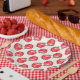 Placas de papel de Apple com os guardanapo de papel de harmonização.