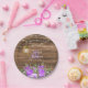 Prato De Papel Madeira, Lanternas e Flor Roxo
