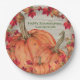 Madeira rustica Outono Laranja Pumpkins Cair Deixa pratos de papel personalizados. | Ação de Graças Feliz