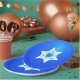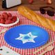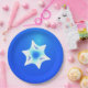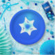 Apresenta uma estrela fractal branca de David num fundo azul.