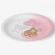 Celebre a vinda do seu monte de alegria com este adorável que mal podemos esperar em pratos cor-de-neve de papel de chá de fraldas de Natal rosa apresentando um urso sonolento vestindo um chapéu de santa rosa-bebê e arco segurando balões sentados em uma nuvem cintilante.