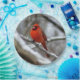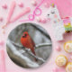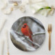Um Cardeal vermelho brilhante adiciona uma pop de cor num dia de neve sonhador.