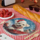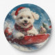 Prato De Papel Maltês Cachorro com Sledge Deixe-o nevar no Natal