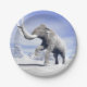 Mammoth grande que anda lentamente na montanha nevado contra o vento