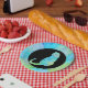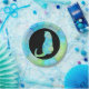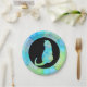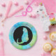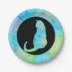 This simple paperplate has a green blue yellow colored mandala pattern. With a cat!