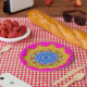 Prato De Papel Mandala Magic Blue e Dourado em Fuchsia