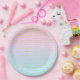 Prato De Papel Mão Azul Rosa com Linhas Douradas