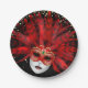 Esta placa de papel é mostrada com um impressão festivo de máscara de carnaval Mardi Gras. Também oferecemos um guardanapo correspondente. Personalize este item ou comprar como está.