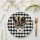 Esta placa de papel é mostrada em um impressão de diamantes de harlequin preto e branco festivos com um impressão de máscara Mardi Gras. Personalize este item ou comprar como está.