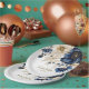 Prato De Papel Marinho Azul Ouro Branco Prata Floral