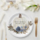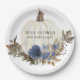 "Marinho Azul Floral Branco Pumpkin Chá Baby Boy Paper Plate Party Decor." Marinho Azul e azul empoeirado caem florais com tom sépia, folhagem de folhas mudas e amoras marrons de chocolate que giram em torno da abóbora branca. A maior parte da arte foi pintada manualmente em aquarela por Audrey Jeanne Roberts. Conjunto completo disponível para coordenar. Direitos autorais.