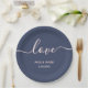 Prato De Papel Marinho de Script de Amor Elegante e Casamento Bra