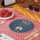 Prato De Papel Marinho Elegante e 80 Dourado e aniversário lendár
