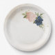 Lindo prato de papel de casamento com marinho e flores cor-de-rosa e folhas verdes. São simulados os detalhes do brilho dourado. PARA MAIS PRODUTOS CORRESPONDENTES, clique na coleção acima ou entre em contato comigo