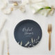 Design verde de folhagem botânica de cor aquática moderna sobre fundo azul marinho moderno, placa de papel simples e elegante para chá de panela moderno, casamento botânico rústico e festa de chá de fraldas no verão e outono. Veja todas as peças correspondentes na coleção.