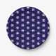 Prato De Papel Marinho Padrão Floco de Neve Azul e Branco Inverno