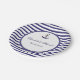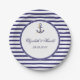 Personalize este elegante design de Placa de Papel de Stripes de Marinho Náutico de Casamento Náutico. design de padrão striped marinho azul e branco com uma âncora da nave do marinho na parte superior e uma borda de corda azul e branca.O padrão striped azul e branco do marinho também é colocado na parte traseira. Um modelo para uma fácil personalização dos detalhes do seu casamento, como nomes de noiva e noiva, assim como a data do casamento.O mesmo design está disponível em outros suprimentos de papel de carta de casamento correspondentes para carregar o tema do casamento náutico em estilo.