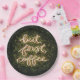 Prato De Papel Mas Primeiro Café, Neon Lights Cita Dizendo