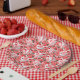 Prato De Papel Máscaras de Kitsune e camélia rosa em flor