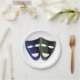 Um par de máscaras de teatro, um azul e um verde. Este design parece realmente eficaz nestas placas de papel