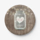 Rustic Mason Jar & String Lights Barn Wood Wedding Paper Plates.