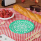 Esta mandala branca senta-se sobre um fundo verde minúsculo. As cores são muito relaxantes e leves. Parte da coleção Mola Mandala.