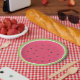melancia, fatia, fruta, comida, verão, bonito, cor-de-rosa, desenhos animados, miúdos, redondos