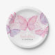 Prato De Papel Menina rosa primeiro aniversario de borboleta roxa