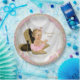 Convite de chá de bebê de sapato de salto alto rosa e dourado com adorável bebê loira de cabelo claro vestindo tutu rosa e colar de pérolas sentada em um par de sapatos de salto alto elegantes com glitter dourado em um fundo de cetim rosa e dourado. Esses pratos de papel para chá de bebê rosa e dourado são facilmente personalizados com texto, ou você pode remover o fundo de cetim e adicionar sua própria cor de fundo. Este é um design impresso sem glitter, pérolas, cetim, etc. reais.