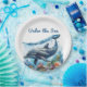 Celebrar o nascer a breve trecho com este oceano espiritual "Sob o Mar" inspirou Placas de Papel em cores azuis com golfinho e onda para o Chá de fraldas Boy