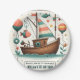 Prato De Papel menino bonitinho de bote alegre Peixe de um primei
