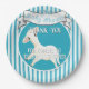 Papel de Chá de Baby Boy coloca uma linda ovelha de carneiro e uma faixa de retrô de vintage azul com guarda-chuva azul. Texto que diz Obrigado por vir ou mudar para o que quiser.