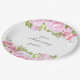 Prato de papel de jardim de rosas com guirlandas de rosas cor-de-rosa bonitas emoldurando sua mensagem de casamento personalizada especial em um texto de roteiro elegante. Projetado por Thisisnotme©