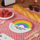 Prato De Papel Mensagem Personalizada Retroativa Arco-Íris e Nuve