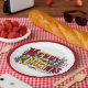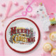 Paper plates with decorative words Merry Christmas, flowers, Holly and Berries from the Currier and Ives 1876 Merry Christmas message.