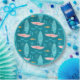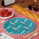 Prato De Papel Mid Century Pink Catamaran - Blue Background