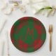 Placa de papel de ocasião, com o padrão de xadrez tartana Middleton vermelho e verde e um monograma grande de uma letra, no meio. Personalize a carta para atender às suas necessidades.