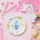 Estas placas de papel irão deleitar as crianças em uma festa de aniversário com a aparência de serem pintadas com impressões manuais. Respostas aos guardanapos de papel disponíveis