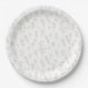 A delicate seamless floral pattern paper plate featuring elegant line art illustrations of wildflowers, leafy stems, and tiny berry branches on a clean white background. This minimalist botanical design uses soft neutral tones and fine outlines to create a calm, modern aesthetic.