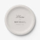 Wedding paper plates to match our Editorial Photo Wedding collection. This design features couples names in script calligraphy and a classic serif font with a unique layout, and the background of the plate is an off-white ivory color. Custom paper plates, perfect for serving snacks, desserts, and more. View the collection linked on this page for the full wedding suite. Feel free to message me with any questions, I'll be happy to help!