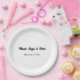 Coordinated Suite: These plates are part of a complete reception collection, including matching napkins, cups, and program fans for a seamless visual experience.