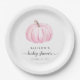 Estas placas mínimas de papel de chá para bebês bonitinhos apresentam uma aquarela cor-de-rosa pastel de uma abóbora, um "chá de fraldas" em um roteiro de na moda bonito, e o nome e a data do chá da futura mãe em uma mistura de tipografia moderna e escrita à mão.