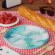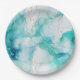 Prato De Papel Mint Aqua Dourada Ink Marble