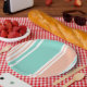 Prato De Papel Minúsculas Verdes e Pêssegos Modernos