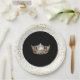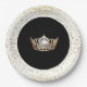 Estas placas de papel são mostradas em um impressão bonito de estrelas coloridas de Ouro pequeno sobre a borda branca e uma Coroa Dourada brilhante no centro negro. Mostrado no tamanho de 9". Personalizar ou comprar conforme mostrado.