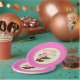A festa de aniversário de papel desta criança apresenta um tema ocidental projetado especificamente para uma garota. O fundo é cor-de-rosa claro com borda de corda e é acentuado com um par de botas cor-de-rosa. O texto do estilo da corda diz: "Aposto que ainda não inicializamos!"