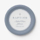 Modern Dusty Blue Religious Cross Baptism Paper Plates.
