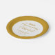 These 50th Wedding Anniversary paper plate feature a modern minimal design accented with gold handwriting style calligraphy and a gold border.