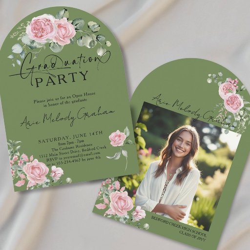 Inspired by a summer rose garden, this graduation paper plates features soft blush roses in a wreath that create a beautiful blend of classic romance and modern typography. An elegant wreath of greenery and pink flowers frames beautifully graduate's name and the year of graduation.